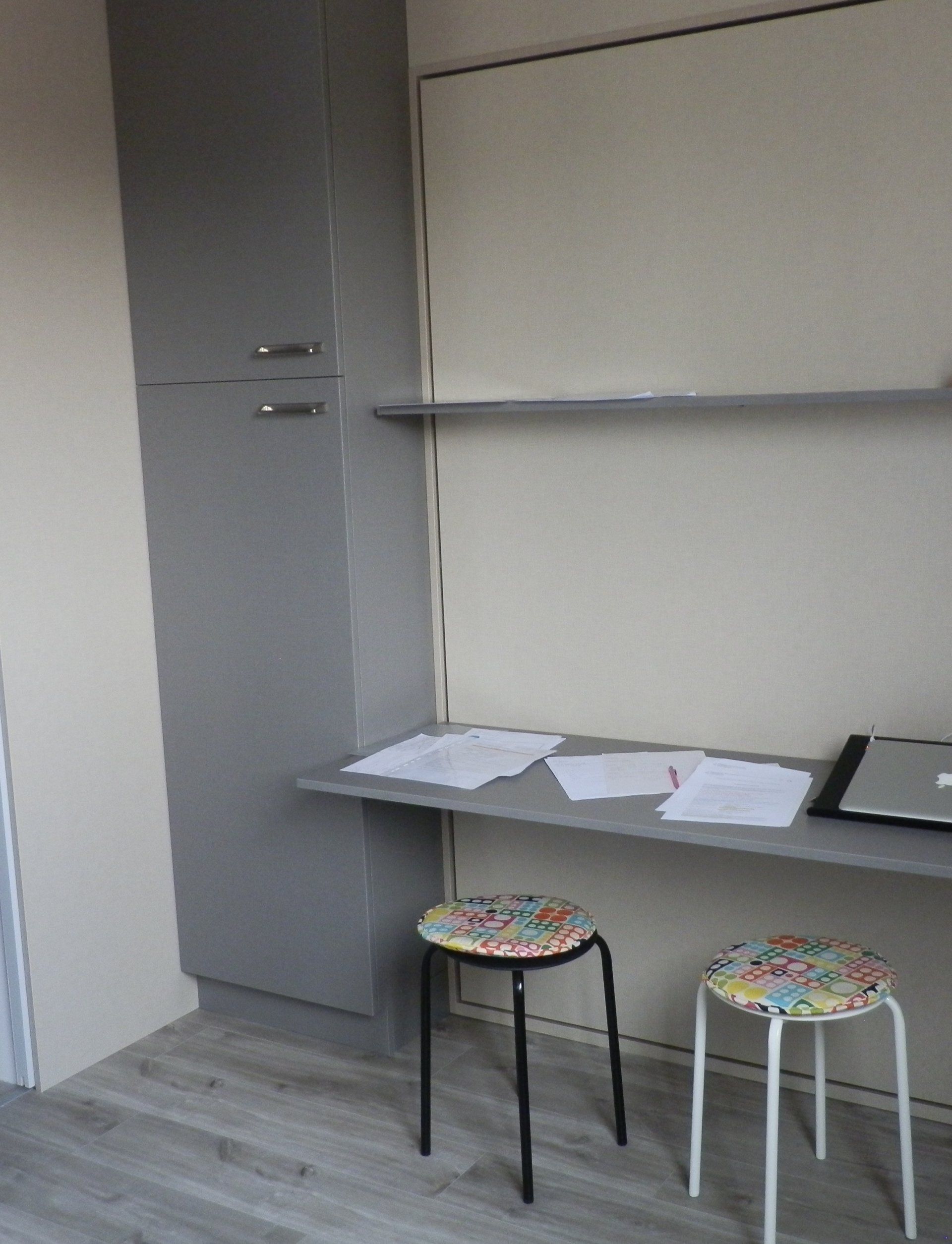 Fabrication d'un lit escamotable avec 1 tablette bureau et 1/2 étagère au-dessus .