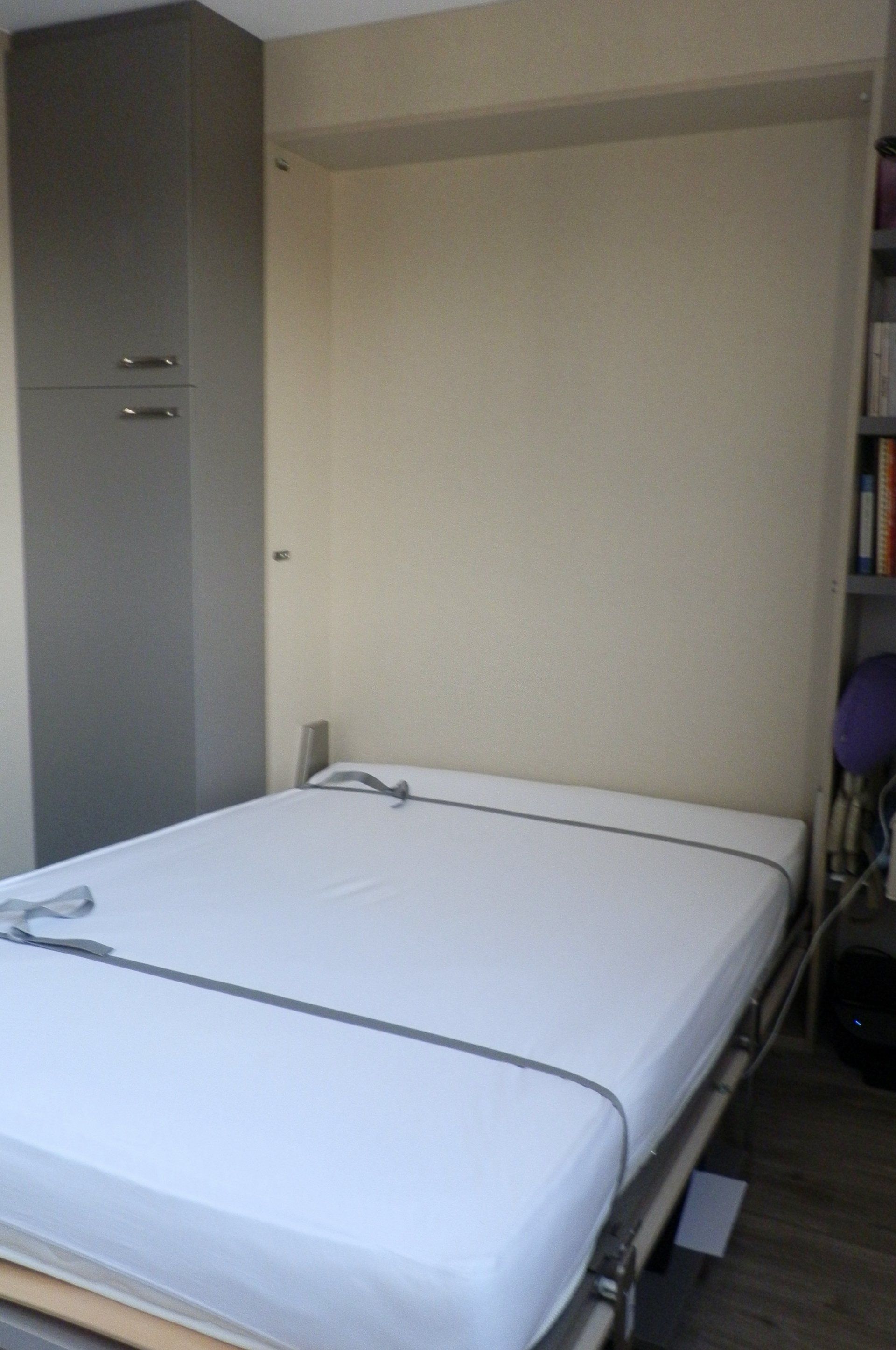 Inutile de débarasser les étagères pour ouvrir le lit!!! Tout reste en place..