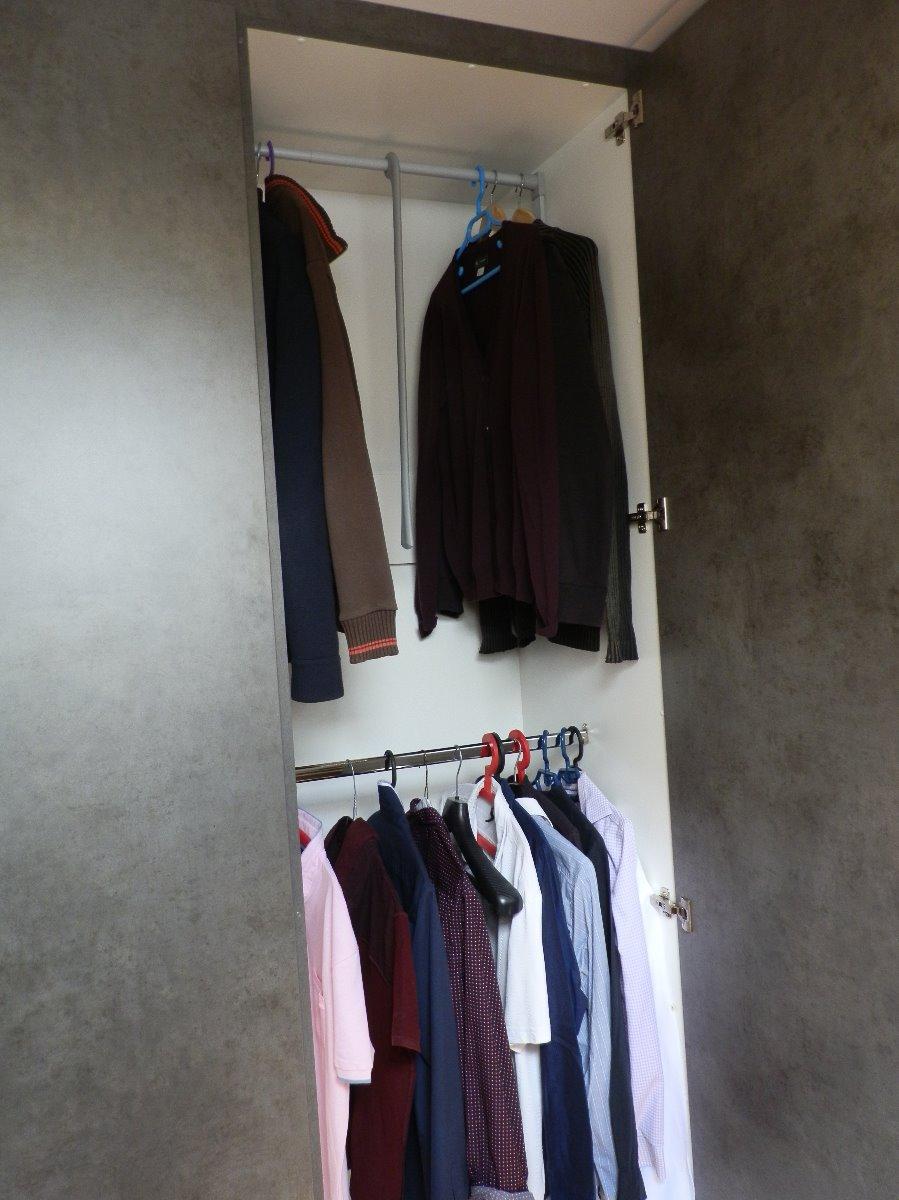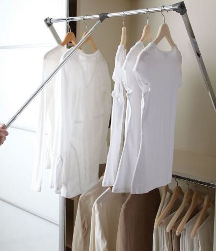 Système de penderie escamotable, qui permet d'avoir des vêtements en hauteur et de pouvoir y acceder facilement.